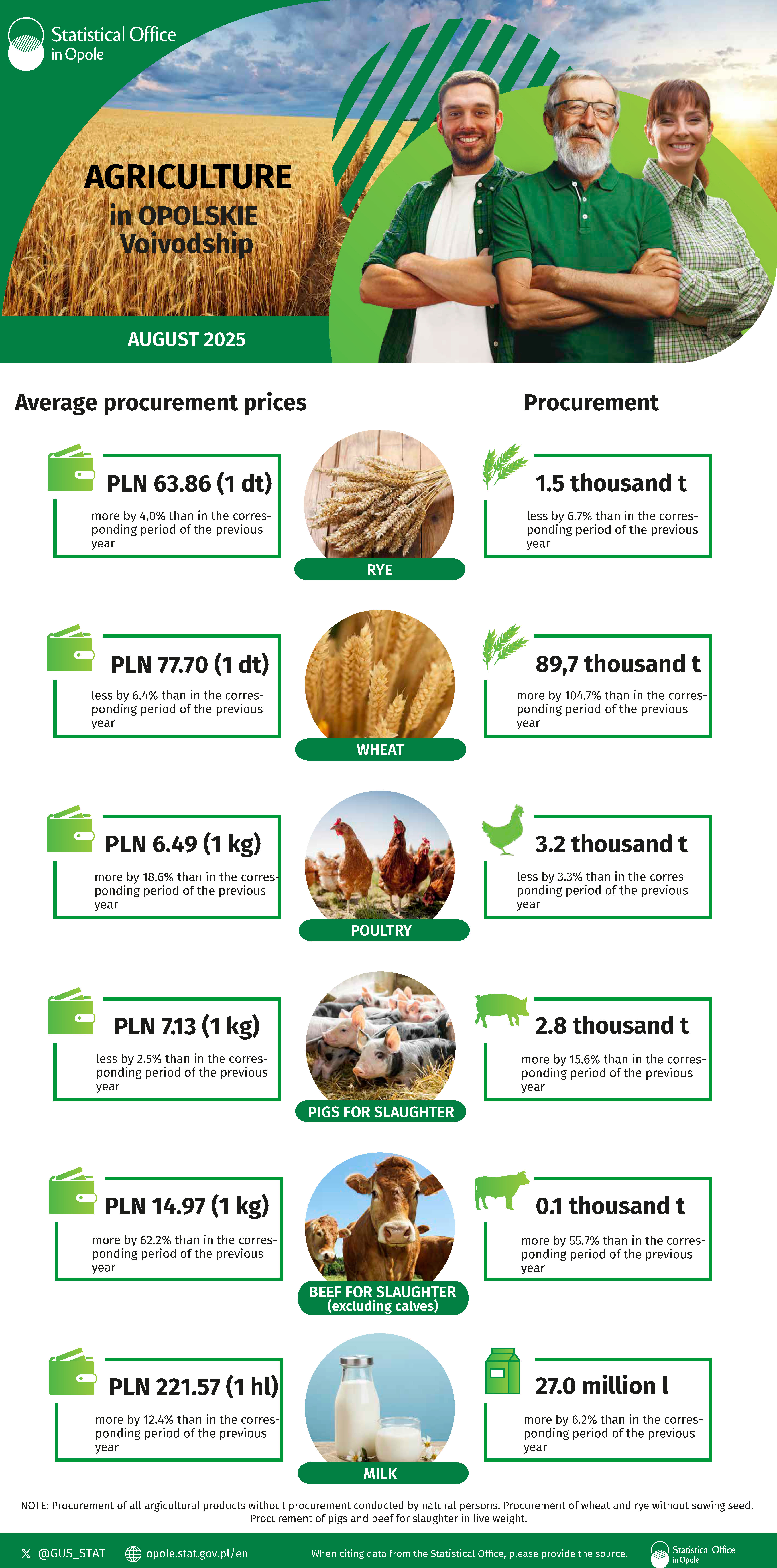 Agriculture in Opolskie Voivodship - August 2025 A A A 02.10.2025 Downloads Agriculture in Opolskie Voivodship - August 2025 0.37 MB Archive 2025 Agriculture in Opolskie Voivodship - July 2025 Agriculture in Opolskie Voivodship - June 2025 Agriculture in Opolskie Voivodship - May 2025 Agriculture in Opolskie Voivodship - April 2025 Agriculture in Opolskie Voivodship - March 2025 Agriculture in Opolskie Voivodship - February 2025 Agriculture in Opolskie Voivodship - January 2025