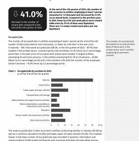 The study presents data on the demand for labour in Opolskie Voivodship in 2024, compared to 2023. It contains basic information on the number of the occupied jobs and job vacancies. It also presents data on newly created and liquidated jobs by ownership sectors, the size of units and sections according to PKD.