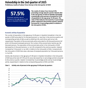 Quarterly information about labour market was compiled on the basis of generalised results of the representative Labour Force Survey (LFS), carried out in the 2nd quarter of 2025 compared to the results of these surveys from the previous quarter and corresponding periods of 2024 and 2020. The study contains information about i.a. economic activity level of population by demographic and social characteristics, employed and economically inactive persons.