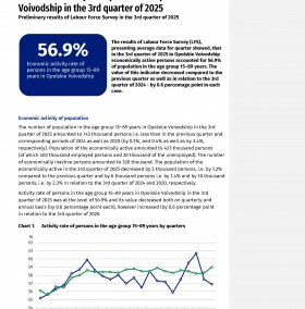 Quarterly information about labour market was compiled on the basis of generalised results of the representative Labour Force Survey (LFS), carried out in the 3rd quarter of 2025 compared to the results of these surveys from the previous quarter and corresponding periods of 2024 and 2020. The study contains information about i.a. economic activity level of population by demographic and social characteristics, employed and economically inactive persons.